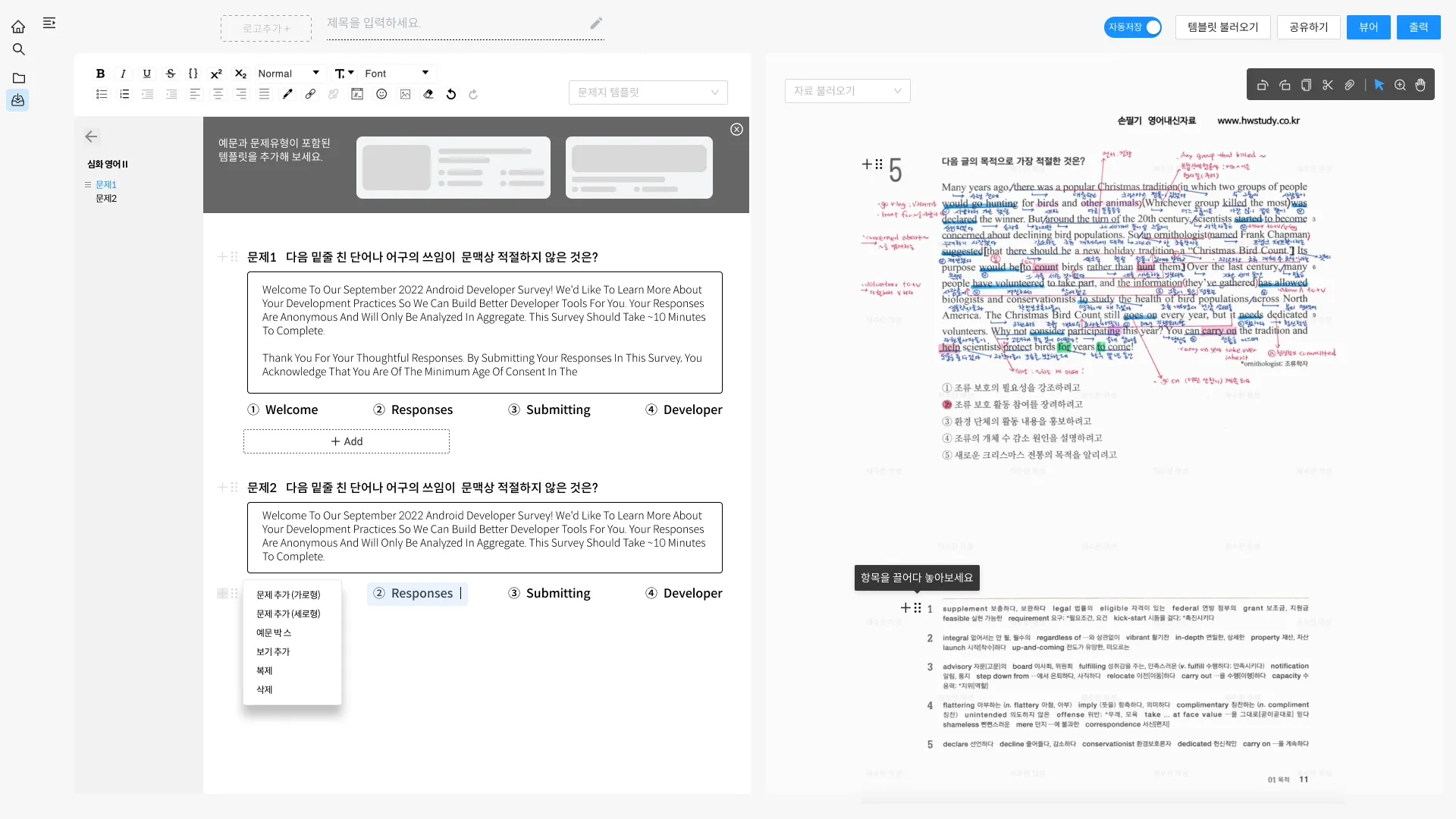 교재 제작 과정에서 문서와 마켓의 자료를 오가며 작업해야 해 번거로움