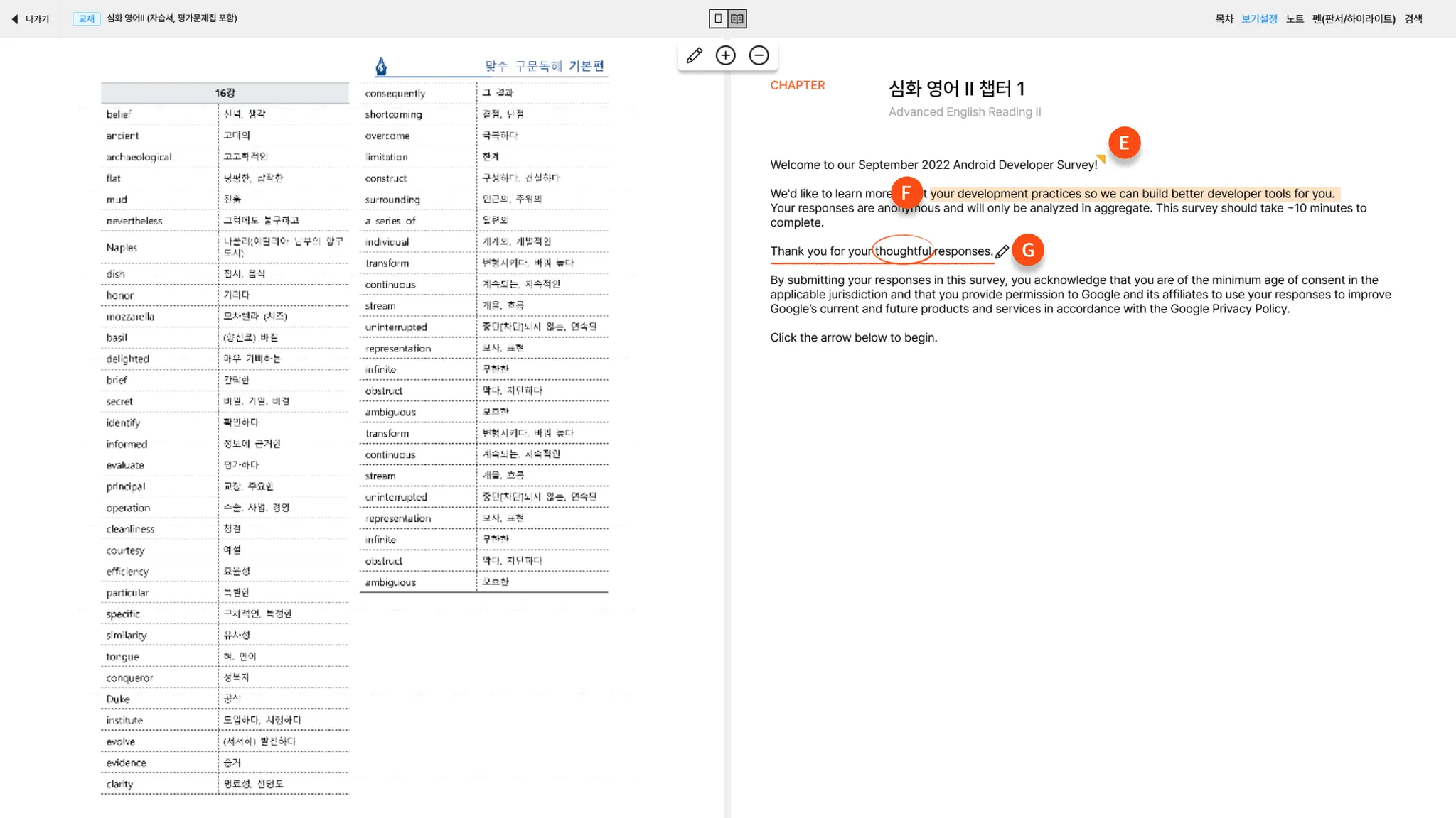 페이지 단위 콘텐츠 탐색 및 하이라이트 기능 포함
