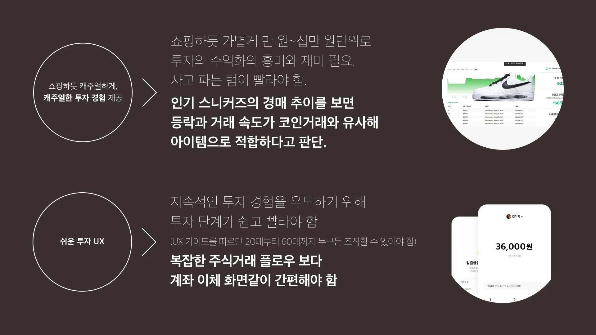 마침 스니커즈 리셀 시장이 커지던 시기였고, 이를 조각 투자 상품으로 제안할 수 있다고 생각했습니다